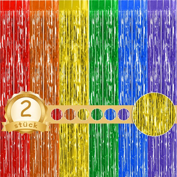 - Box contents: 2 packs of colourful foil tassel curtains, foil curtain size is 1 x 2 m, one pack is red, orange and yellow, one pack is blue, green, purple and can easily decorate your party. Perfect for creating a stunning backdrop for any occasion