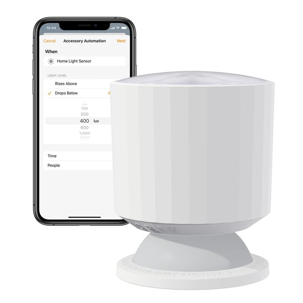 - 【Measures Light Exquisitely, for Setting Up Automation Flexibly】With a high precision light sensor from Texas Instruments, and a multiple-section Fresnel lens built-in, the sensor is compact yet sensitive. The measurement range of illuminance is 0 ~ 83,000 lux. You can set up automation in Apple Home based on specific illuminance values, for example, turn on the light at night when the illuminance is lower than 20 lux and a waking up motion is detected.