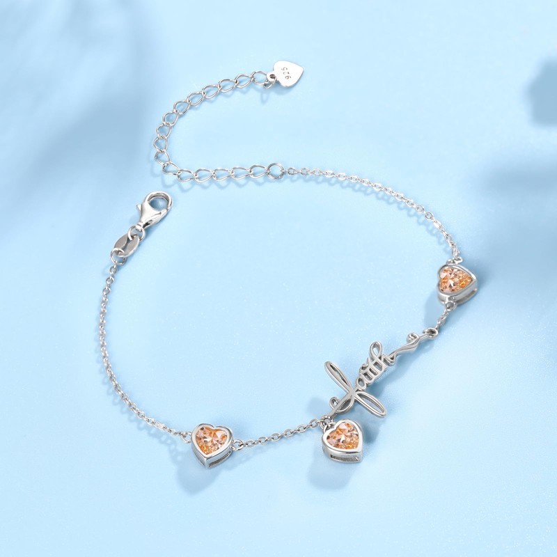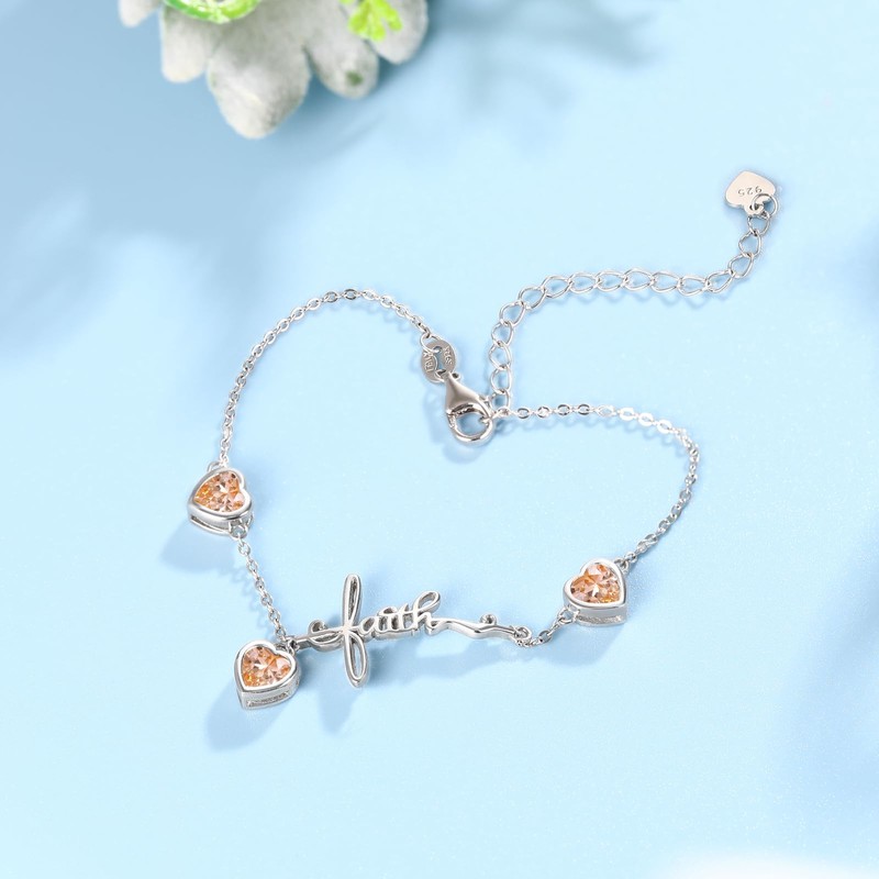 - 💝 Sterling Silver Birthstone Bracelet 💝 Crafted with meticulous attention to detail, this faith Bracelet features 3 heart birthstone charms that adds a personalized touch. Made from high-quality 925 sterling silver, this heart birth stone bracelet is not only elegant but also durable. Express your unique style and faith with this stunning accessory.