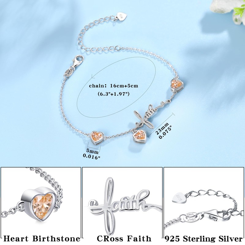 - ✝️💖 Faith Birthstone Bracelet Inspiration ✝️💖 This exquisite cross birthstone Women's Bracelet is designed for women and girls who value faith and love. The cross and 12 heart birthstone charms made of 925 sterling silver symbolize the power of belief and the beauty of a pure heart. Wear this 3 birthstones bracelet as a reminder of your inner strength and love.