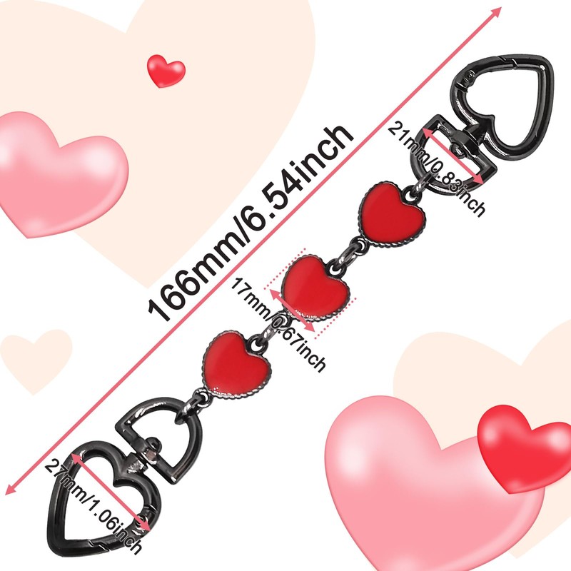QINGSHENG 2pcs Black Color Purse Strap Extender,Heart-Shaped,165mm/6.5in Length,Ladies Bag Chain Extender Bag Charms,Handbags Crossbody Shoulder Bag Chain Replacement Purse Extender(Red-Red-Red)