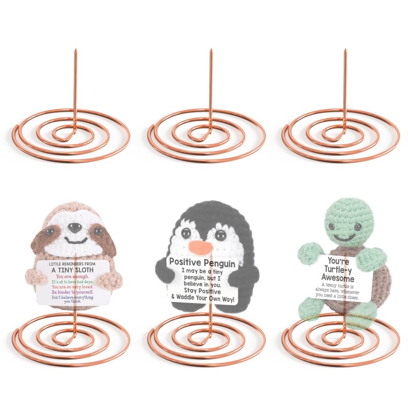 - [ 6Pcs Value Pack ] - Package includes 6Pcs Rose Gold mini crochet figure stands, also to protect from scratches, our crochet holder stands are equipped with a protective sleeve for each needle. Nice crochet pin stand for emotional support pickle, emotional support nuggets, emotional support dumpster fire. Perfect crochet plush stand for emotional support potato, emotional support stuffed animal, mini crochet animals, emotional support hot dogs, emotional support chicken, emotional duck shark.