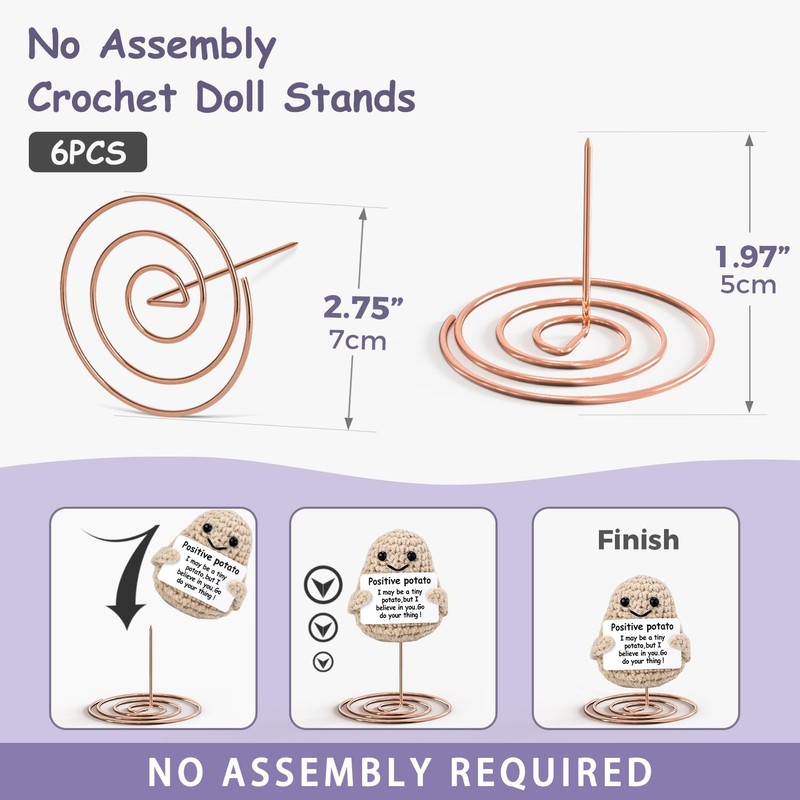 - [ Mini Crochet Doll Stands ] - Our crochet doll holder uses thick metal needles that measure 2.0 inches (5 cm) in height and require no assembly; simply gently insert the thick needles into the emotional support doll. Choose this crochet emotional support base to improve visibility and create a charming, personalized display. Beautiful crochet support stand, crochet stand holder and amigurumi stand.