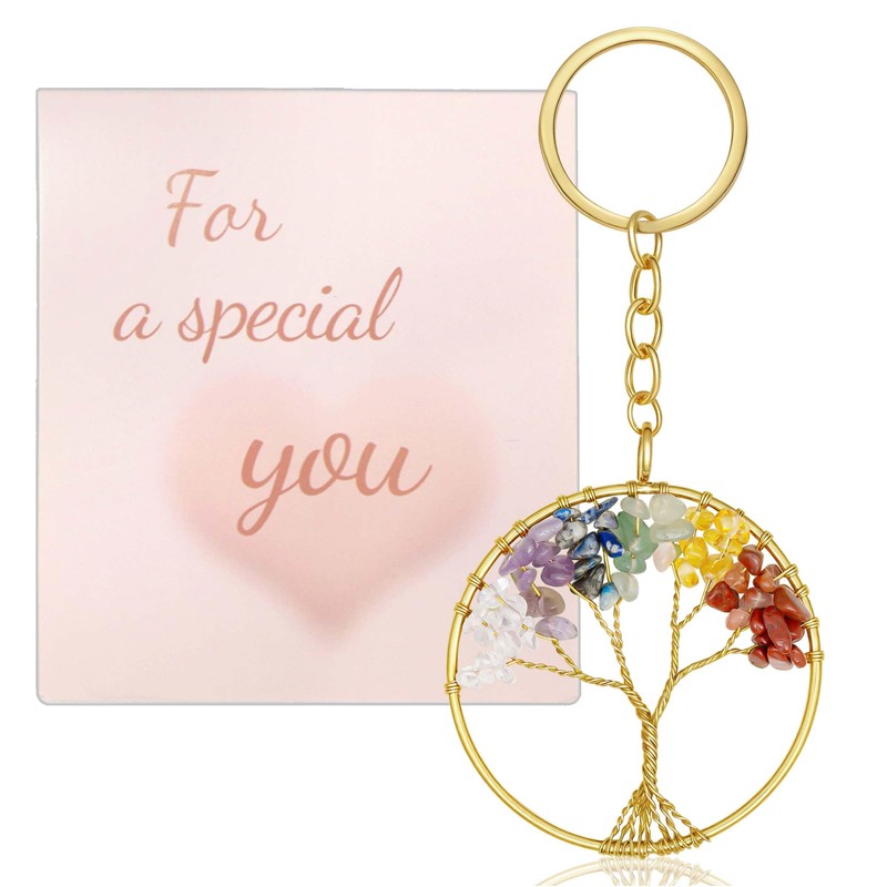 - Product details: You will receive a tree of life 7 chakras keyring with a greeting card. The length of the healing crystal keyring is approximately 4cm/1.57 inches, and the diameter of the crystals keyring is about 5.5 cm/2.16 inches. Crystal keyrings are suitable for both men and women.