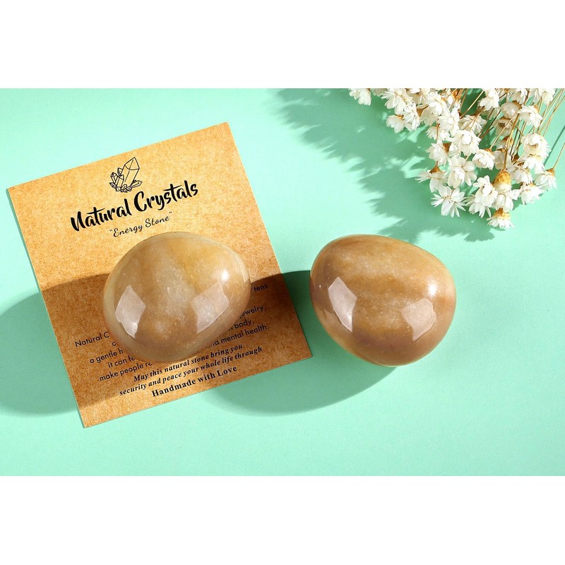 QINJIEJIE Yellow Jade Natural Gemstones Worry Stone Large Stone Healing Crystal Yellow Jade Smooth Crystals Stones 2 Pieces Tumbled Stones Polished Worry Stone Reiki Meditation