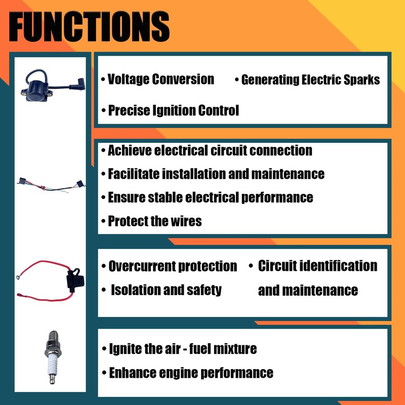 - Package:1xIgnition Coil 1xSpark Plug 1x wire connector 1xfuse tap