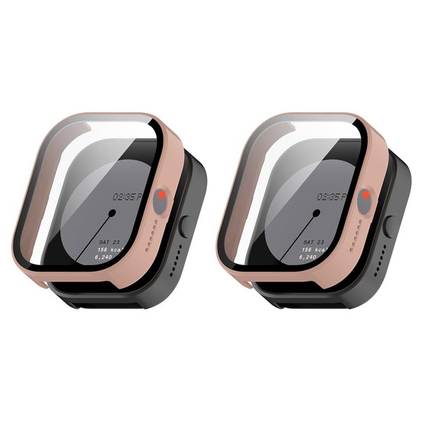 QINOUK Hard PC Case for CMF by Nothing Watch Pro with Built-in Tempered Glass, [Pack of 2] All-Round Anti-Scratch Protective Case Compatible with CMF by Nothing Watch Pro-Pink