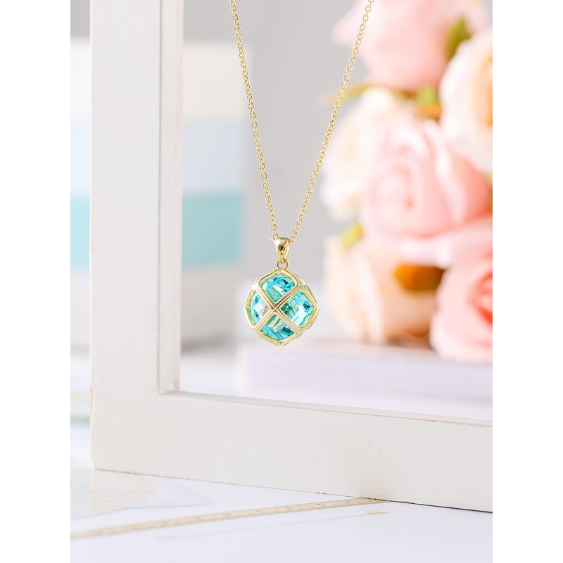 Qinpan - Collar colgante de vidrio de 14 mm para mujer, chapado en Glod, 24.4*17.8mm, Chapado en oro, Aguamarina