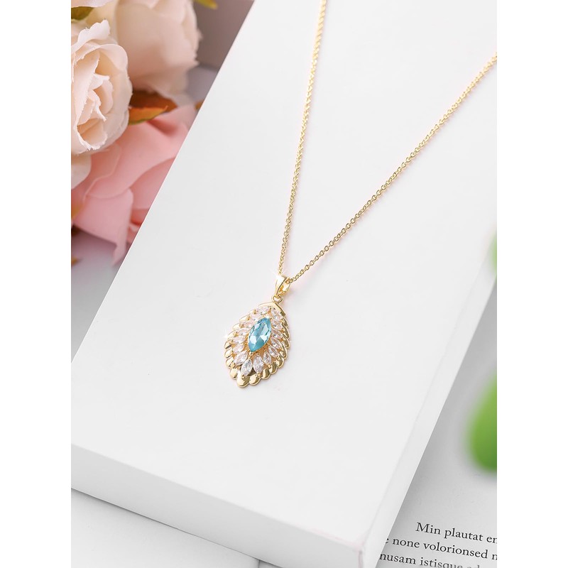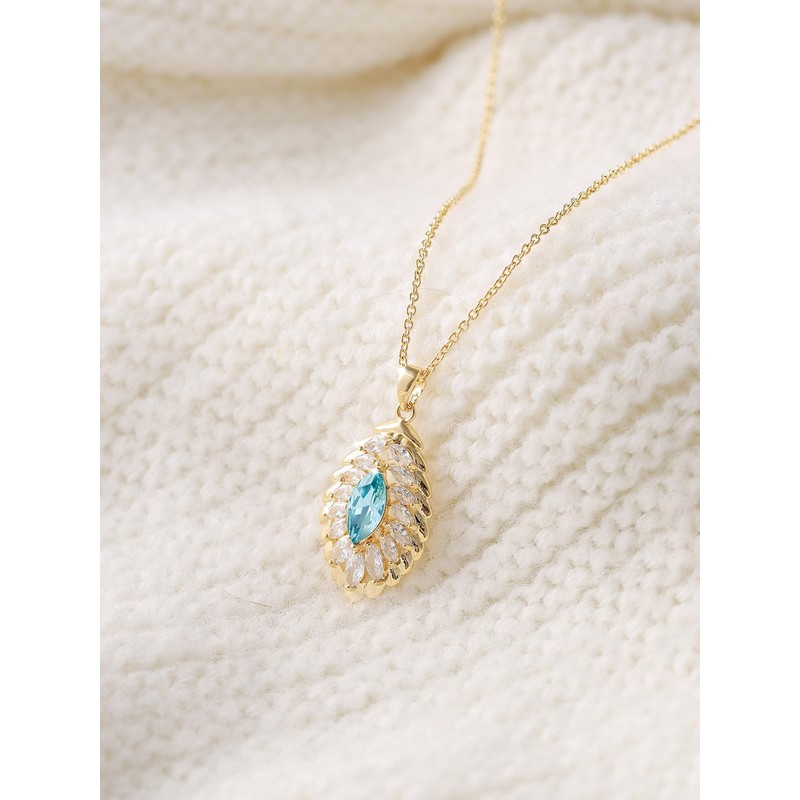 Qinpan - Collar colgante de vidrio ovalado para mujer, joyería de disfraz bañada en Glod, 32*15.8mm, Chapado en oro, Zafiro