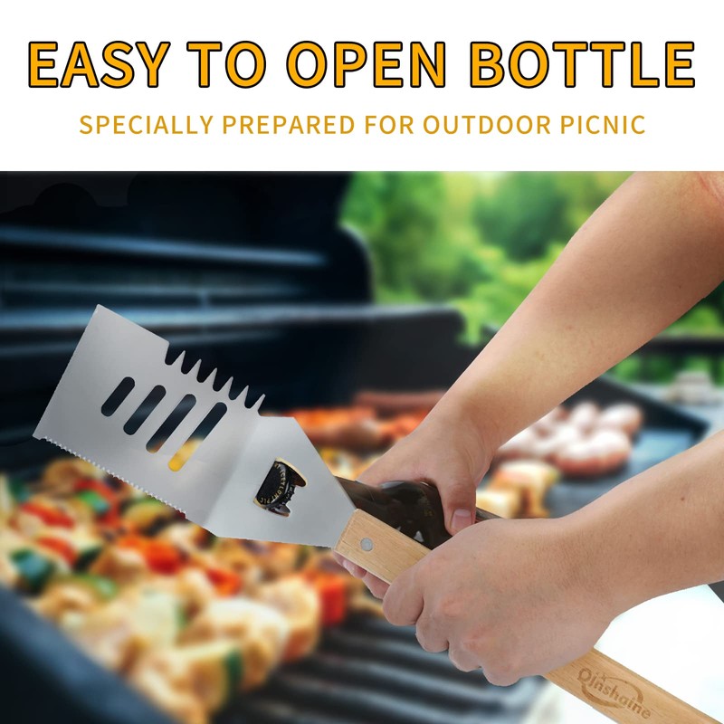 - Multifunction BBQ Tools4 in one grill spatula innovative spatula has a practical spatula, knife blade, conical tenderizer and bottle opener - one tool for 4 things. The large shovel can meet the needs of various scenarios.