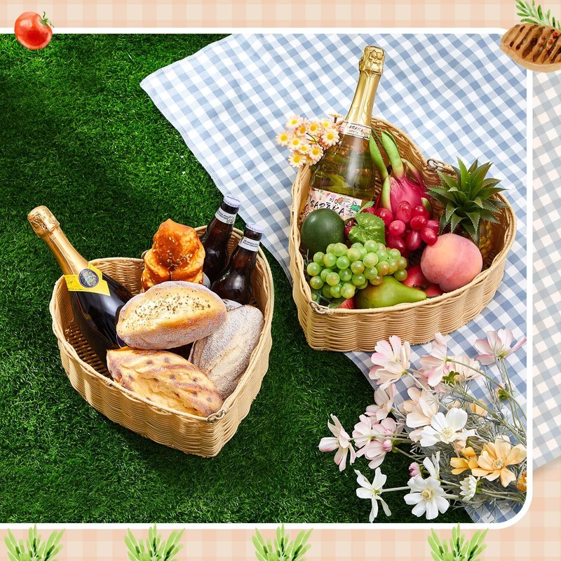 Qinyoung 2 Pcs Heart Wicker Picnic Basket with Handle Medium and Small Heart Shaped Baskets Hand Woven Rattan Empty Basket for Camping Outdoor Party Couple Birthday Wedding Valentine Gift