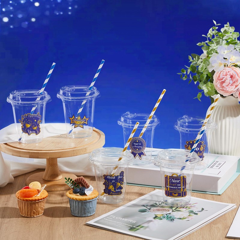 - Employee Appreciation Themed Patterns: you will receive 60 thank you staff appreciation cups with matching lids and colorful striped paper straws, designed with 6 distinct themed stickers; With a variety of 10 pieces for each pattern, they offer a fun and diverse look for gathering