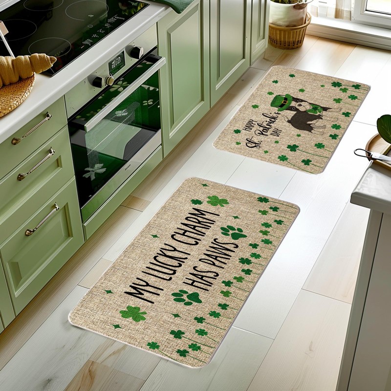 QIONG MENG St. Patrick's Day Kitchen Rug Boston Terrier Kitchen Mat Set of 2, Dog Decorative Farmhouse Floor Mats for Home Kitchen Dining Room Decorations - 17x27 and 17x47 Inch