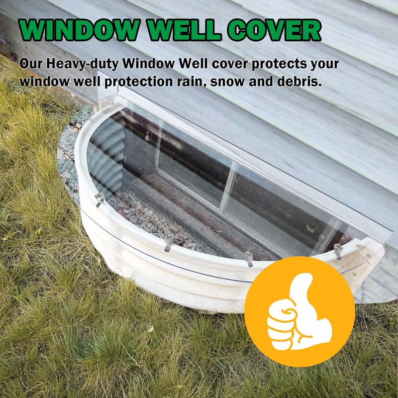 QIPRAONO Basement Window Well Covers Outside, Heavy-Duty Egress Window Well Cover Clear, All-Weather Against Debris, UV Resistant, Tear-Resistant, Waterproof, Windproof (Only Cover)39" X 18"