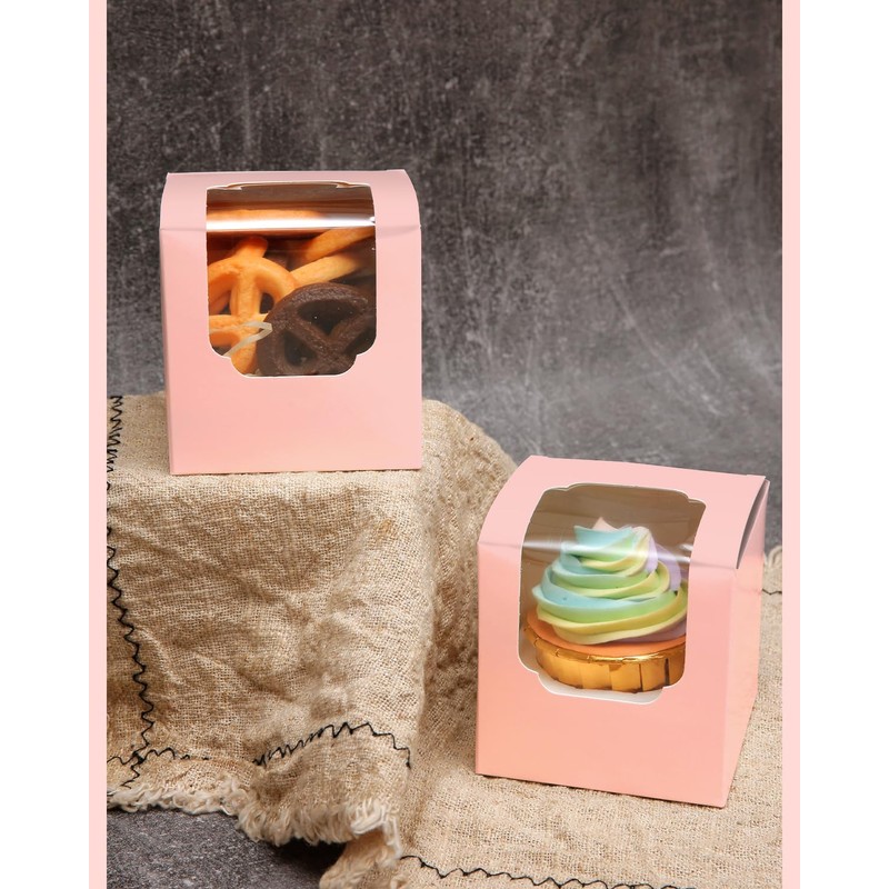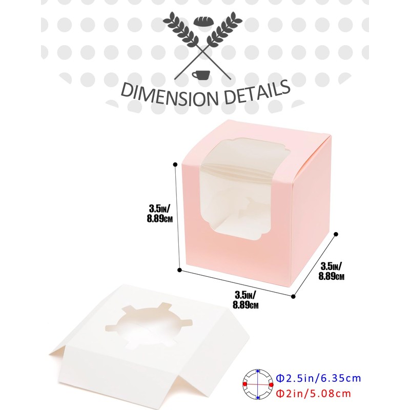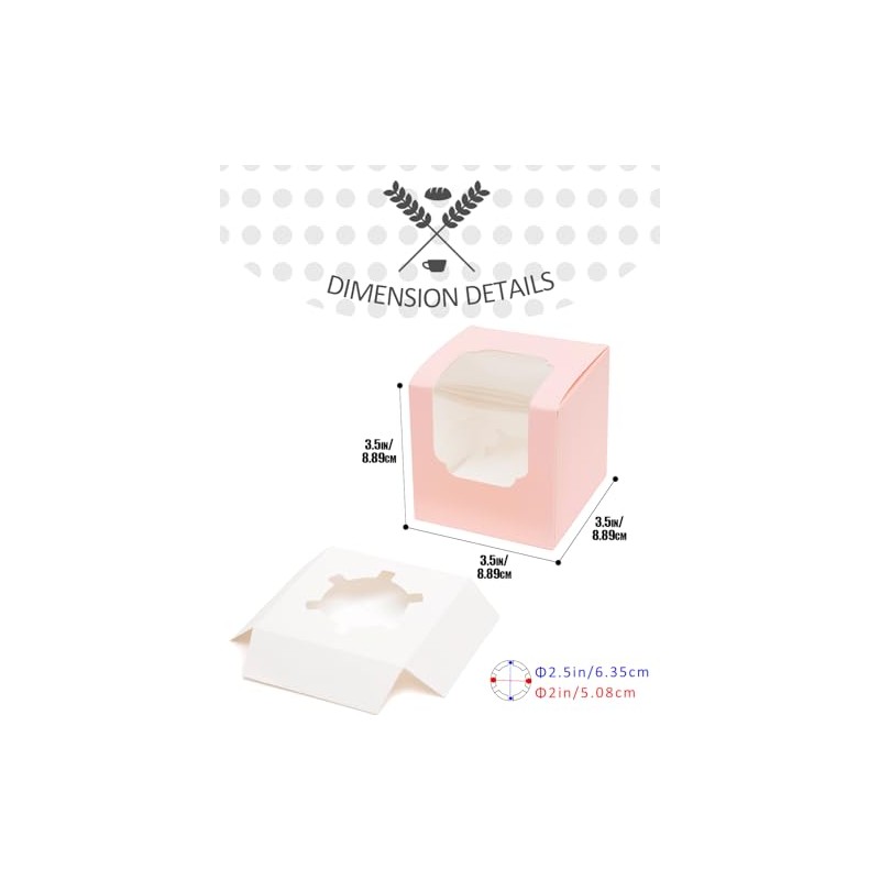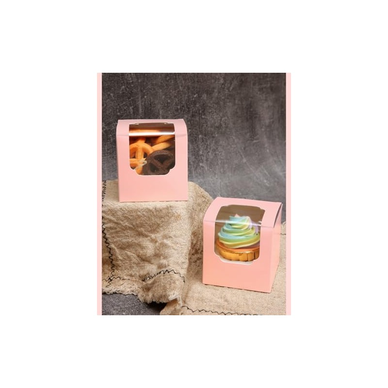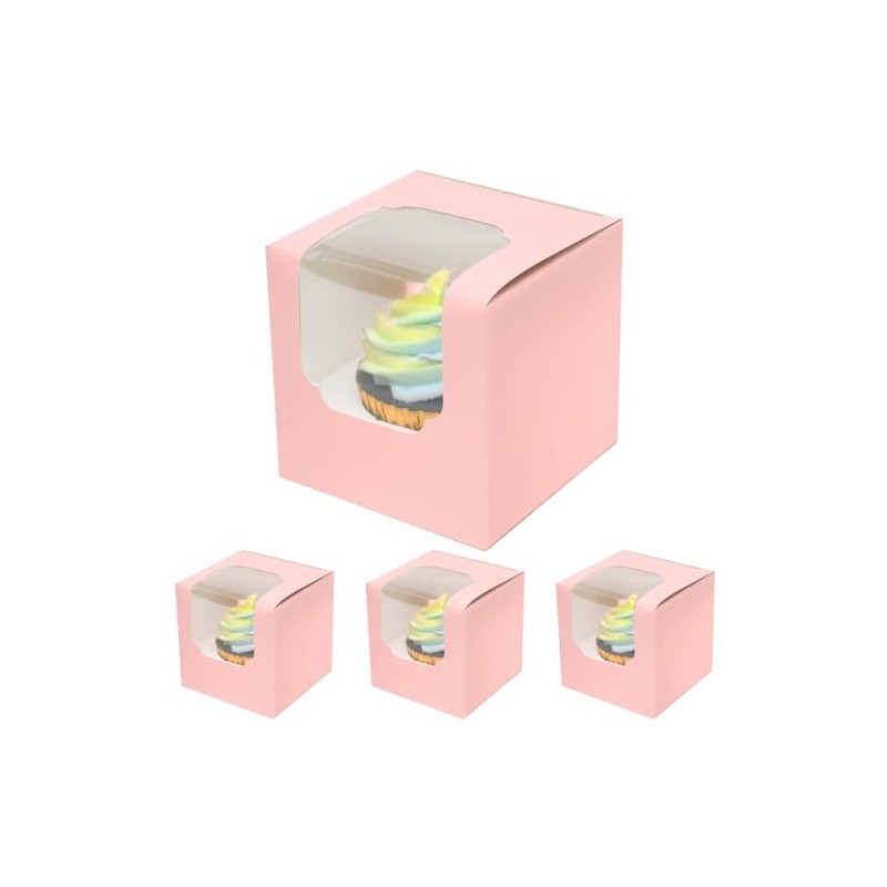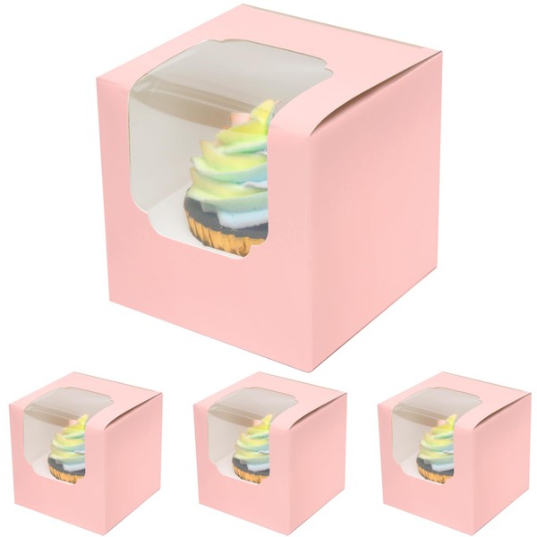 qiqee Pink Cupcake Boxes Individual Cupcake Container 25pcs 3.5" x 3.5" x 3.5" Auto-Pop up Single Cupcake Boxes (25 Boxes+25 Inserts)