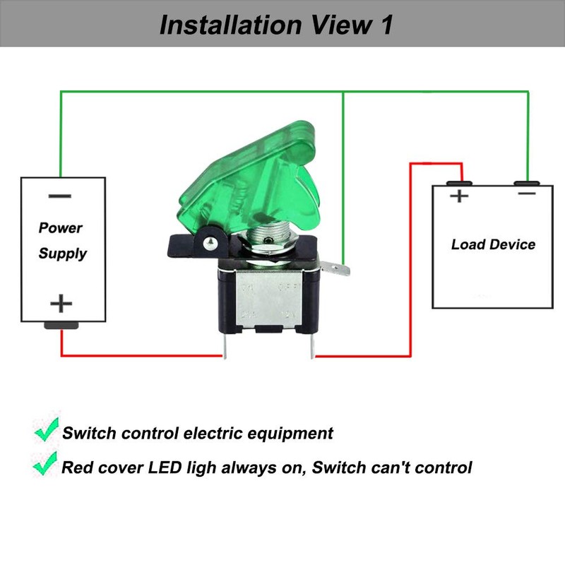 - Professional on/off 2 position SPST 3-pin toggle switch, with green waterproof cover green LED indicator light. The connection switch makes the operation more comfortable.