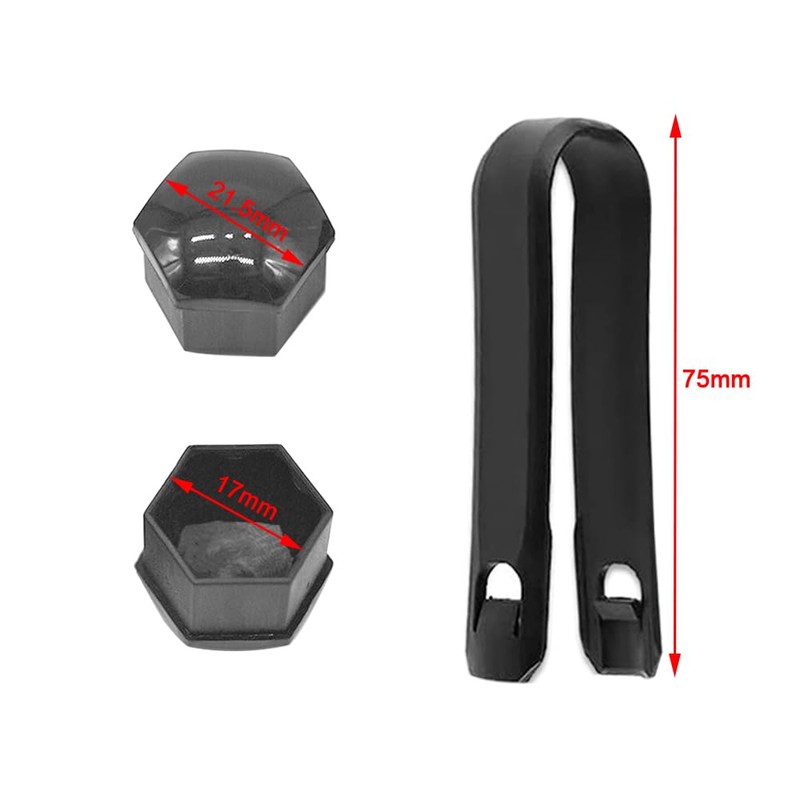 - Clean and dry the surface of the wheel nut before assembly, and then simply press the nut cover into the nut to ensure secure installation. Comes with a black plastic clip to remove the nut cover.