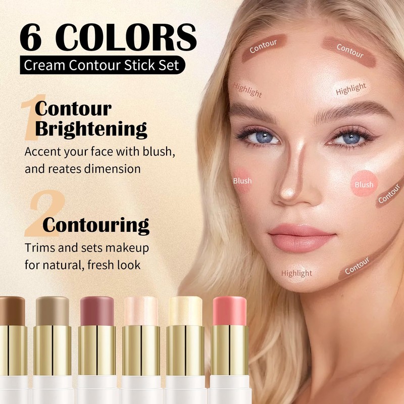 - 【Versatile Shade】Highlight sticks enhance facial features,making the skin translucent and natural;contour sticks create three-dimensional shadows and adjust facial proportions;dark and light blush sticks are suitable for different makeup needs and enhance the layering of facial colors