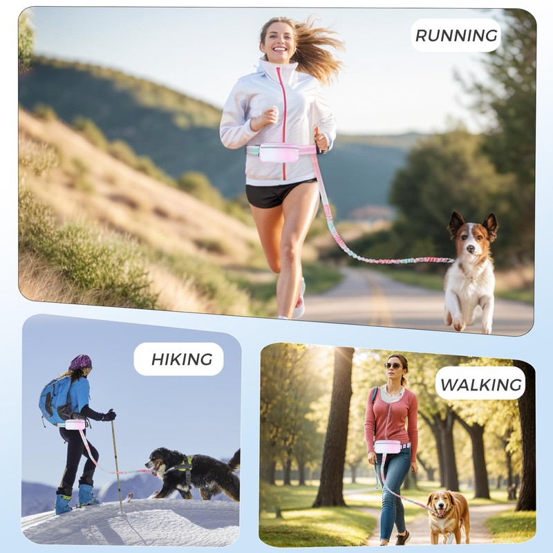 - 【Designed For Nighttime Safety】:Our dog bungee leash includes dual reflective stitching across all of the entire length ,the waterproof waist belt also includes reflective piping ,which reflects light and is clearly visible in dim environments, increasing safety when walking at night.