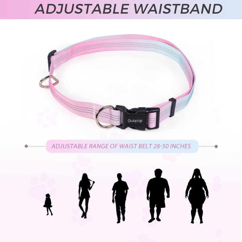 Qiukpzigi Hands Free Heavy Duty Dog Leash with Zipper Pouch,Versatile Dog Waist Leash with Reflective Stitches,Retractable,Bungee Dog Leash for Small Medium and Large Large Dogs Walking, (Pink-Cyan)