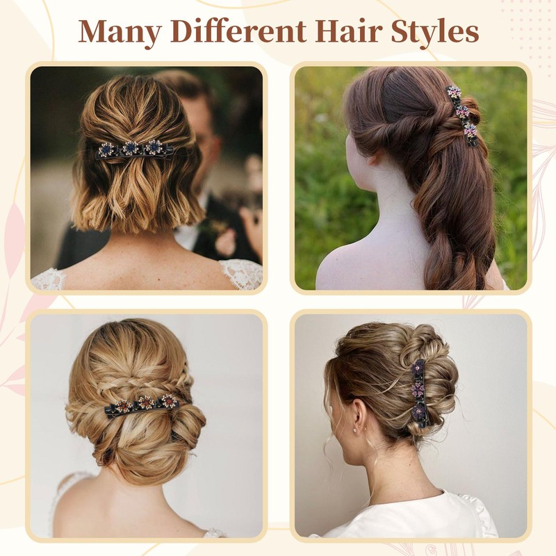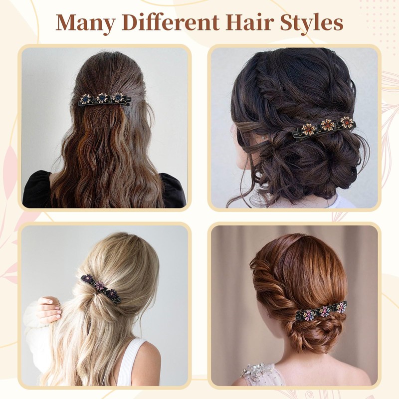- DESIGN Our crystal stone hair clip is artfully designed and features a skillful double layer structure. Even cute girls who do not know how to braid their hair can easily create beautiful braiding hairstyles. Whether for elegant ladies or young girls, hair pins are great decorations, add sophistication.