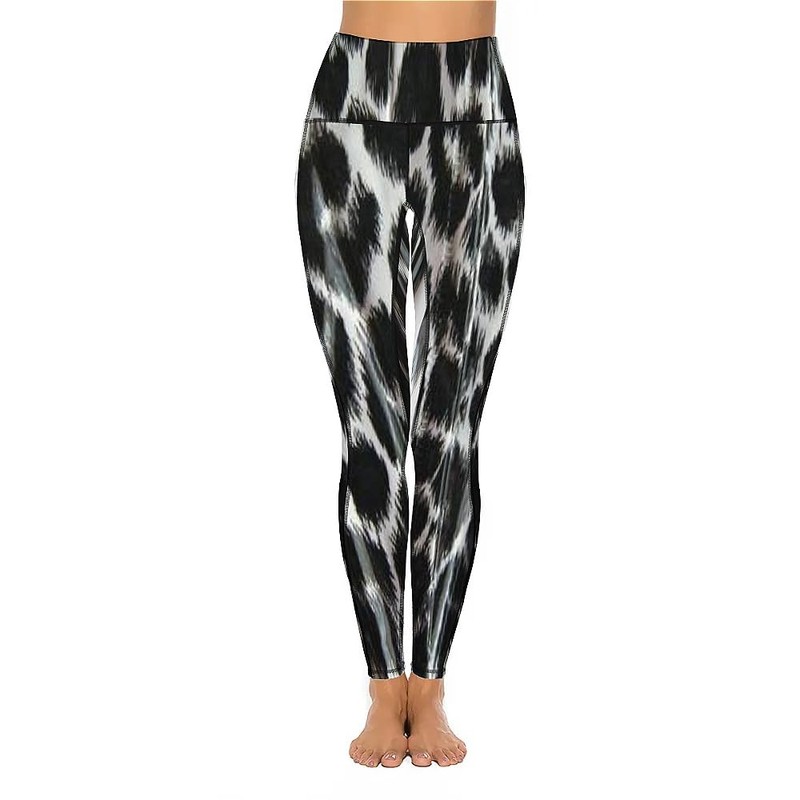 QIVICIMA Workout Leggings for Women Leopard Print High Waist Exercise Yoga Pants 4-Way Stretch Leggings with Pockets Black Leopard XXL