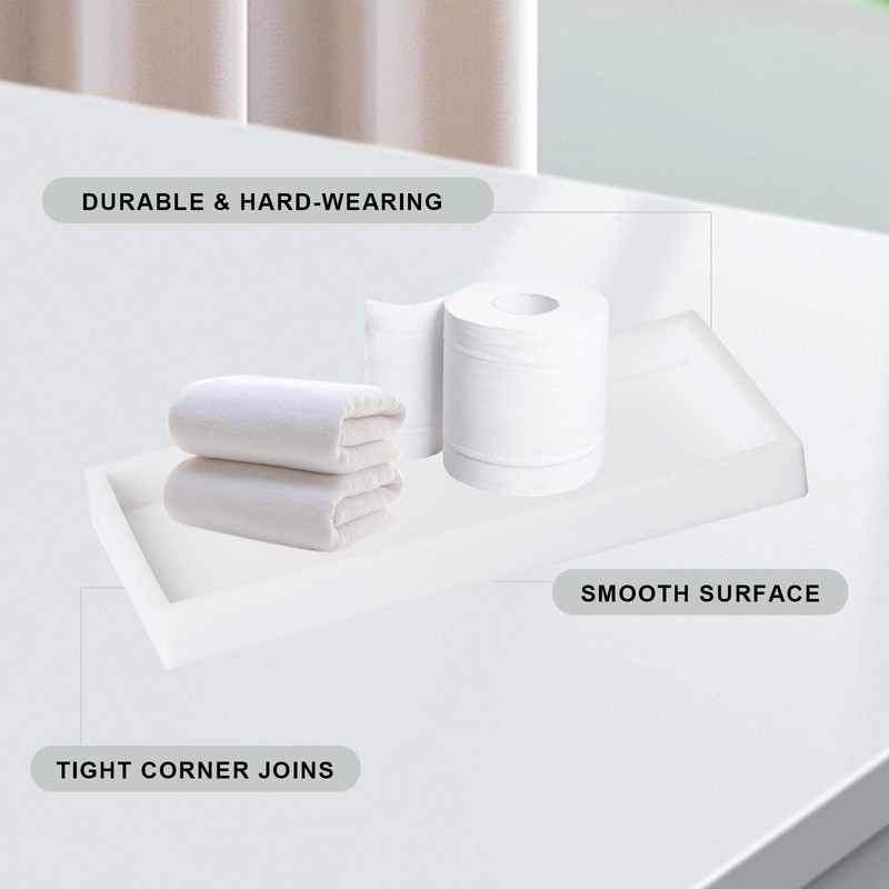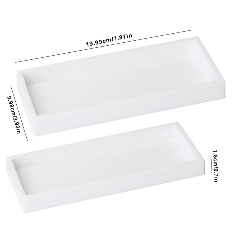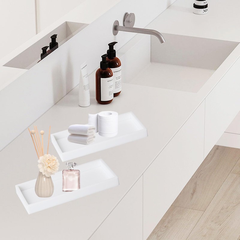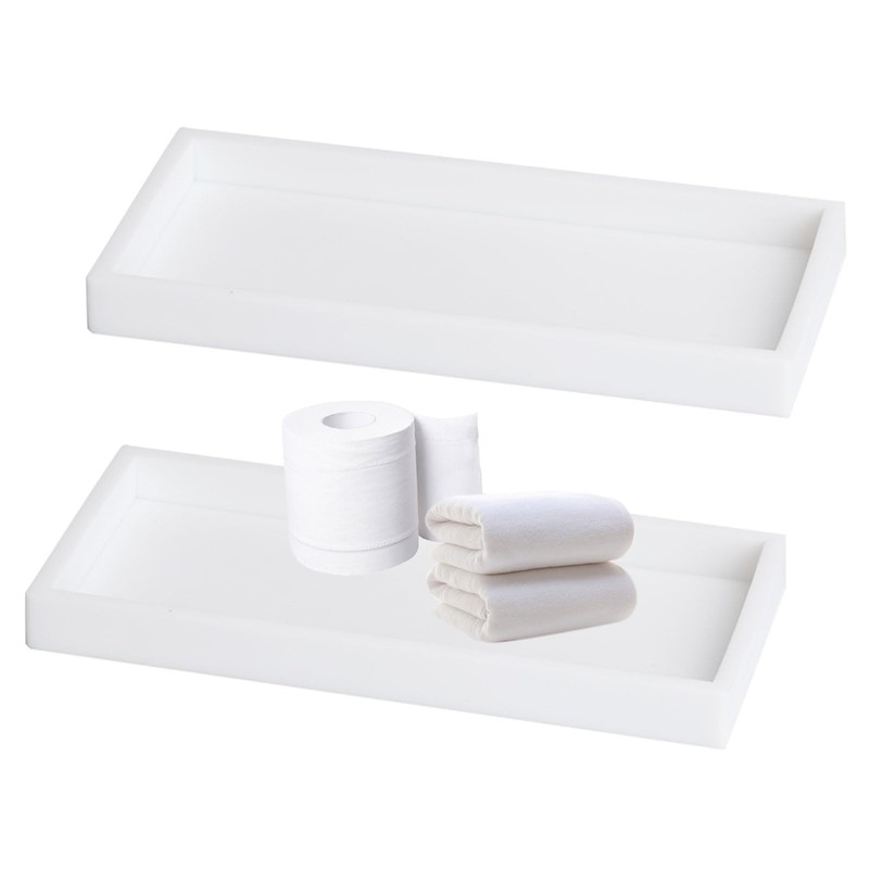 Qivine 2 Stück Badezimmer Tablett, Deko Bad Tablett, Tabletts für das Bad, Rechteckig Breit Badezimmer Tablett Halter für Tücher, Kerzen, Handtuch, Seife, Handtuch (Weiß, Klein)
