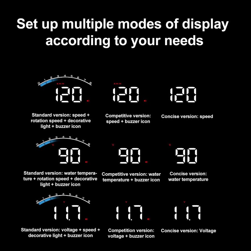 - Alarm Function: Head up display OBD2 is very safe to use, with speeding alarm, voltage alarm, water temperature alarm, fatigue driving reminder, fault alarm and other functions. When the data exceeds the safety data, it will alarm automatically to help you keep safe driving