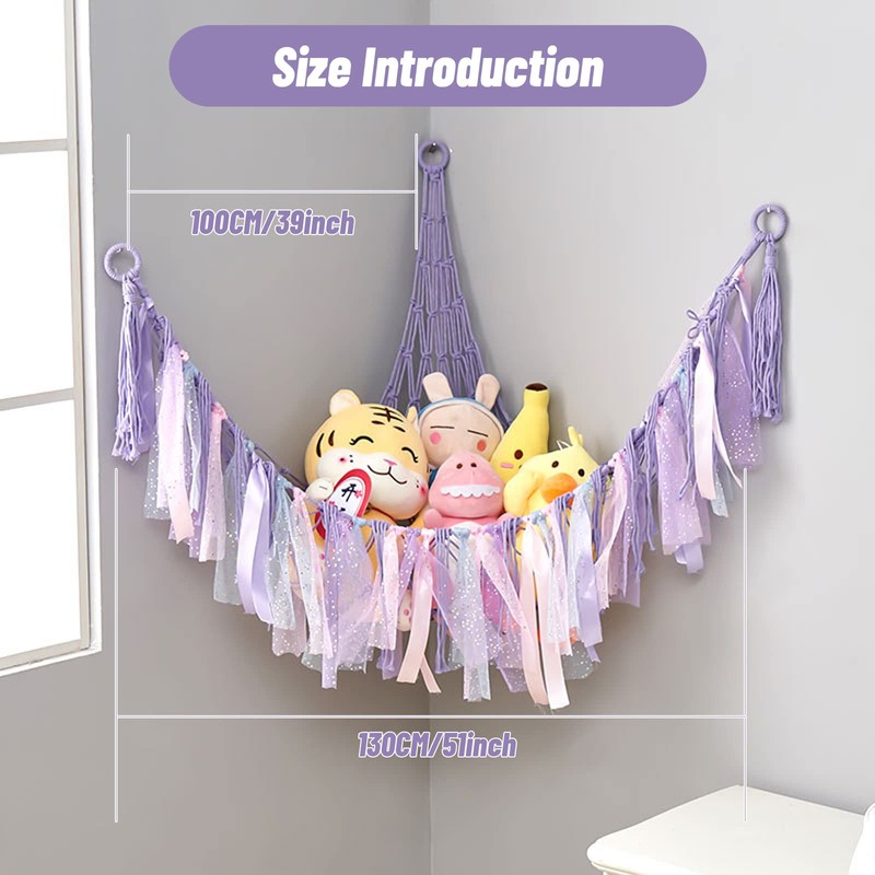 - 【Practicality & Widely Used】: The stuffed animal hammock corner must be a great choice for kids, beautiful appearance and storage function. Perfect for bedrooms, basements, playrooms, nurseries, schools, gyms and more.