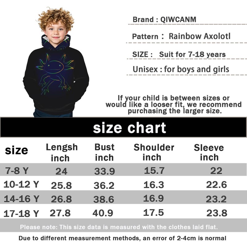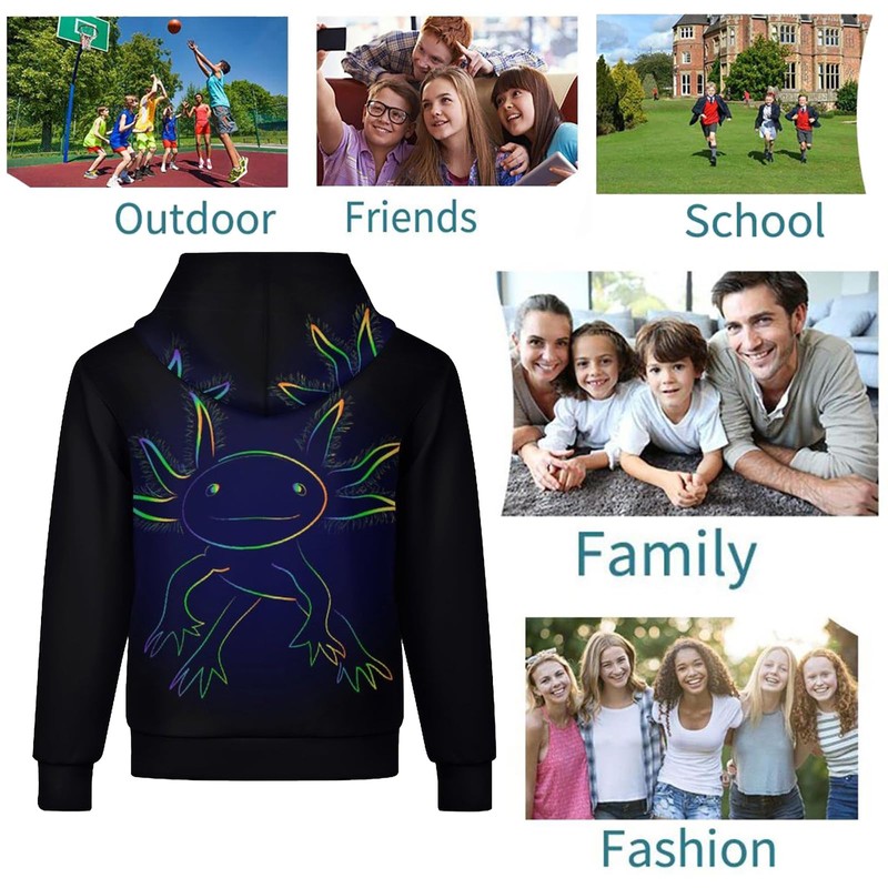 QIWCANM Stylized Rainbow Axolotl Print Kids Sweatshirt Boys Warm Pullover Hooded Girls Long Sleeve Thickened Hoodies for Teen