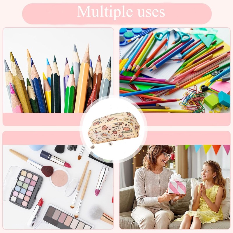 - Widely Used This pencil case has a large capacity and can be used not only as a stationary storage box, but also as a key bag, lipstick and eyebrow pencil. When you go to school, work or travel, the pencil case offers you convenience.
