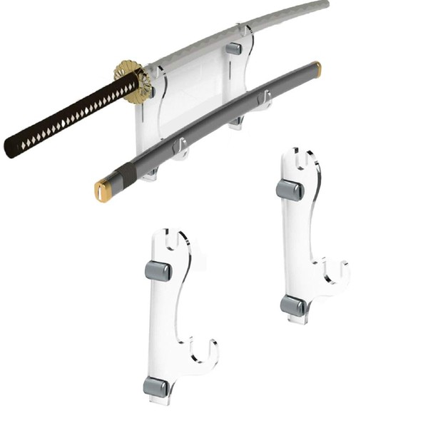 QIXIN Sword Stand, Sword Hook, Two-Layer Wall-Mounted Samurai Sword Stand Display Stand, Sword Stand, Sword Holder, Support All Swords (Transparent)