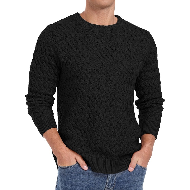 - FEATURES - This stylish cable knit jumper for men has a classic crew neck, long sleeves, regular fit, cable knit, ribbed cuffs and hem with twist pattern and is plain. The solid color makes this cable knit sweater for men classic and versatile.