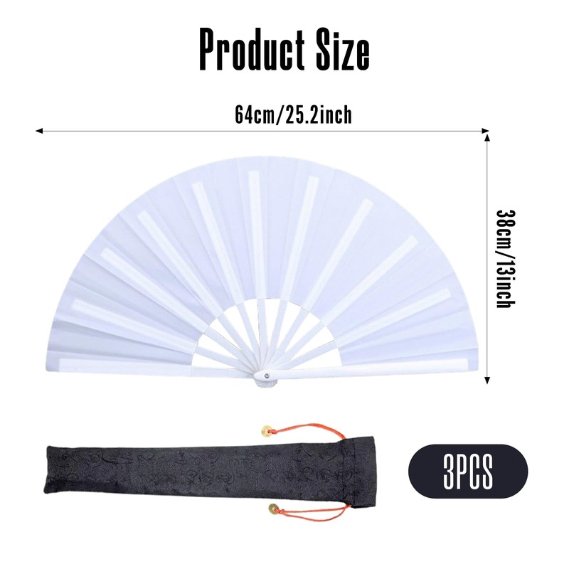 - The set includes 1or 3pcs foldable fans, Folded Length: Approx.33cm (13 inches), Unfold Length: Approx.63cm (25.2 inches)