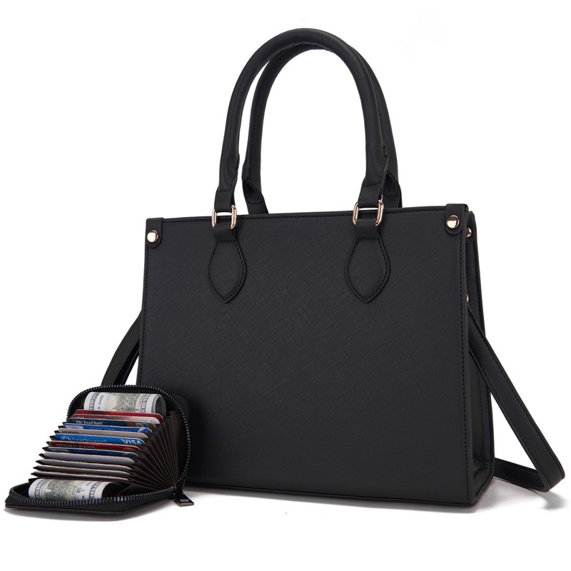 Qiyuer Medium Handbags For Women Vegan Leather Purses Set Satchel Tote Bags With Matching Wallet 2pcs Black
