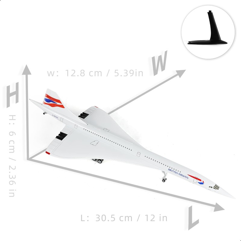 - 【Other details】: This Concorde model has bright and clear patterns that are not easy to fade, and there are landing gears on the belly. Our product packaging includes a display stand for easy display on your desk, perfect for collectors or as a thoughtful gift.
