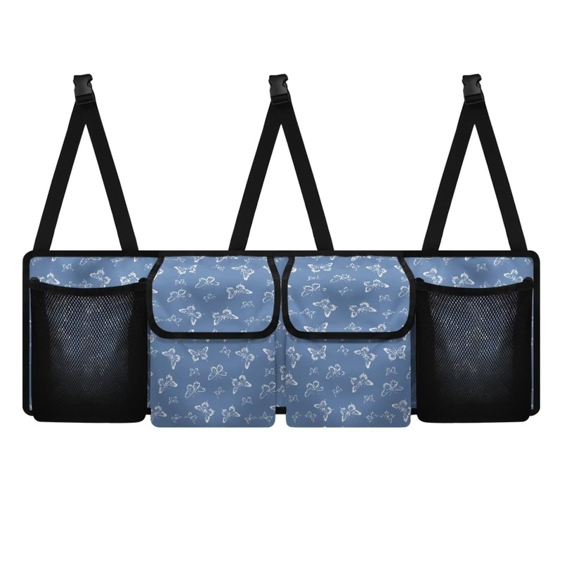 Qiyupavto Butterfly Print Car Trunk Organizer with 4 Pockets Foldable Car Backseat Storage Bag Universal Detachable Auto Accessories for SUV Hatchback Crossover Minivan