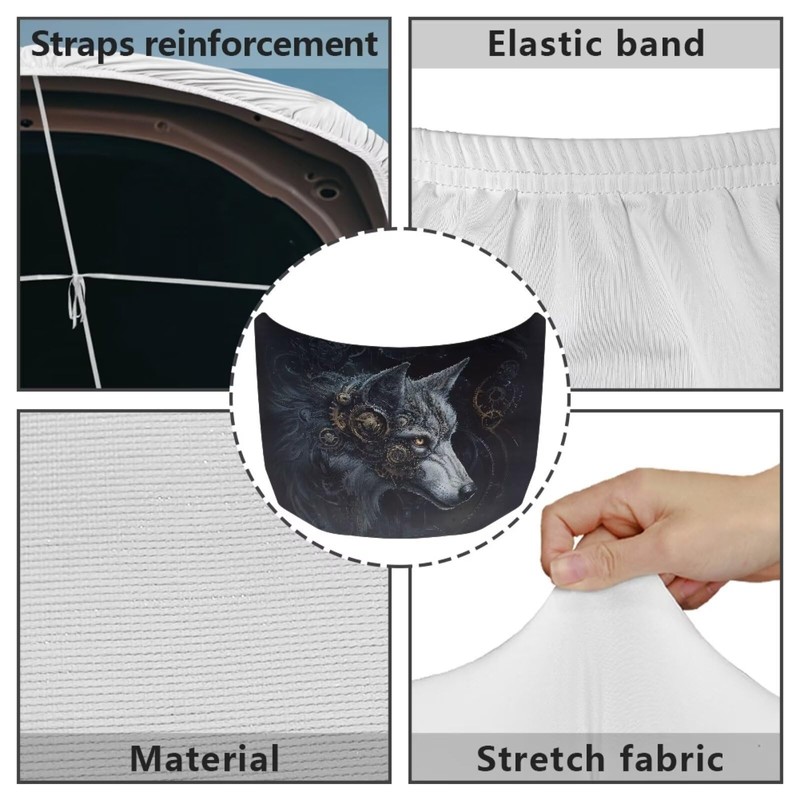 Qiyupavto Car Hood Cover Elastic Polyester Car Hood Protector Mechanical Wolf Print Car Hood Flag Waterproof Car Exterior Accessories for Most Sedans SUV Trucks Pickups