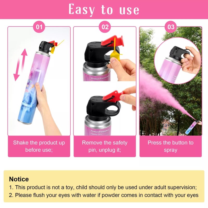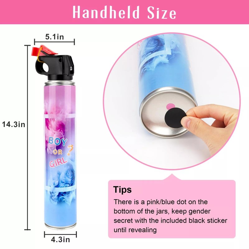 - Lasting more than 15s, our gender reveal extinguisher contains 0.89ib powder inside, can keep spraying more than 15s, a great ideas for your baby reveal party