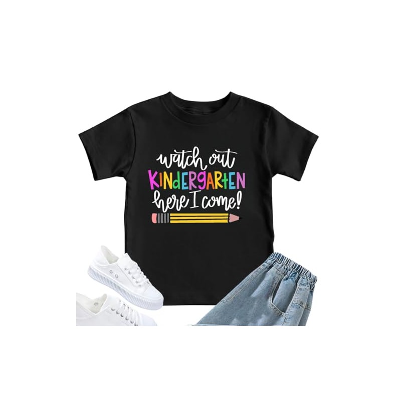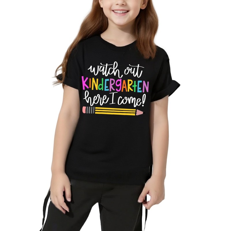 - Feature: Kindergarten here I come tee shirts toddler,kindergarten tshirts for girls boys,back to school shirt kids, first day of kindergarten tshirt kids, watch out, kindergarten here I come graphic tee, school shirts, crew neck and short sleeve design, which is very easy to put on and take off