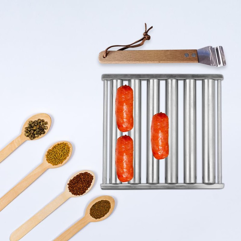 - 【Premium Material】Sausage roller rack is made of premium stainless steel material which is non stick and heat-resistant. You can wipe it with a cloth and have your hot dogs ready in no time.