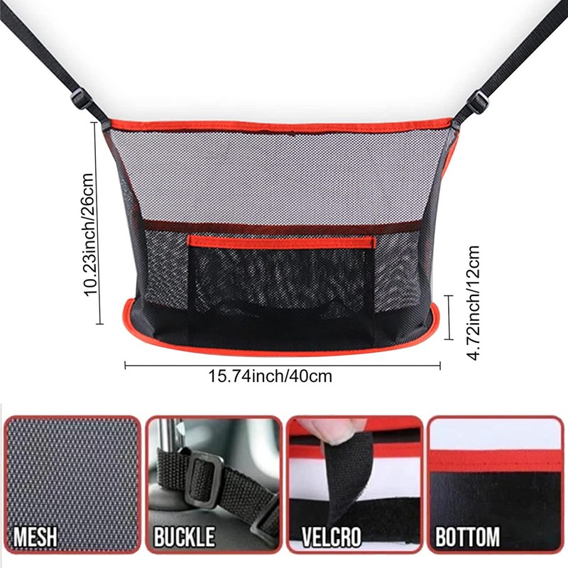 Qkiky Car Net Pocket Handbag Holder Between Seats Back Storage Organizer Purse Holder for Console Front Seat Storage Barrier (Red)
