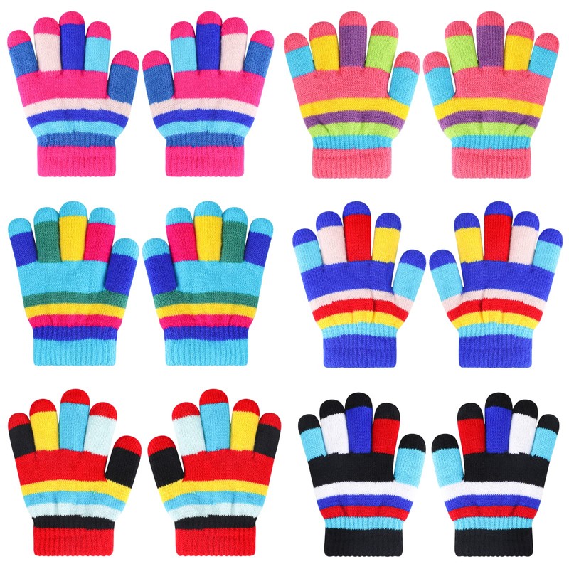 - Perfect Gifts for Kids: Colorful and striped design, easy to match clothes, and add a cute feeling to children's clothes. Soft thickening magic stretch gloves can protect kids' hands from the cold wind,keep them warm and active,protect hands and prevent injuries in the cold winter.Gloves are not large in size, convenient for children to carry, also can be stored in the parents' bags and used anytime and anywhere. A must-have item for kids in cold days.