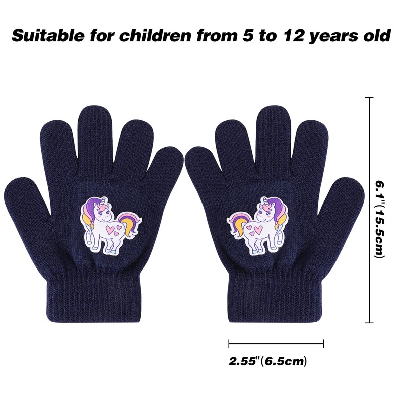 QKURT 6 Pairs Kids Gloves, Children Unicorn Gloves Winter Thermal Magic Gloves Full Finger Stretchy Kids Knitted Gloves Mitten for Boys Girls 5-12 Years Old