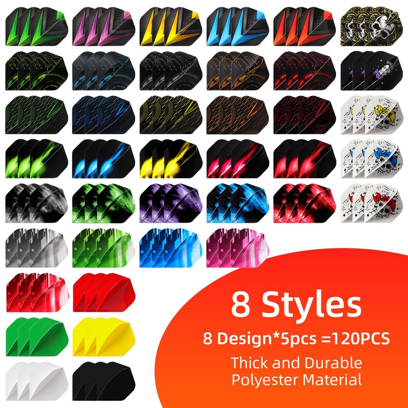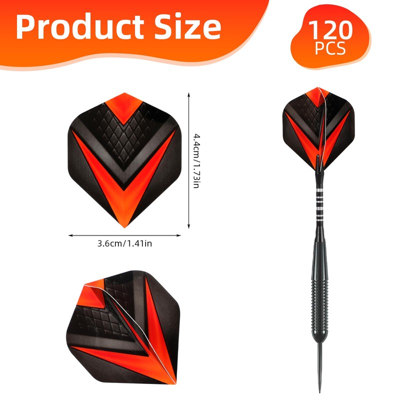 - Package Include: The dart flight has 8 styles, 40 sets, 3pcs for each style,total 120 pieces, single size is 1.72*1.4in/4.36*3.5cm, enough to meet your needs.