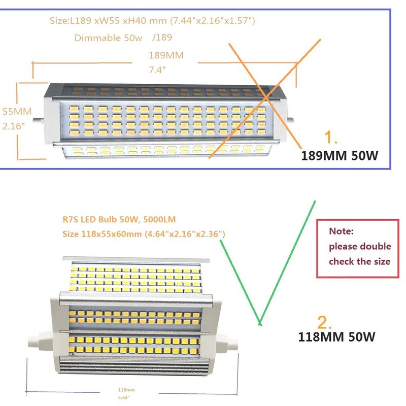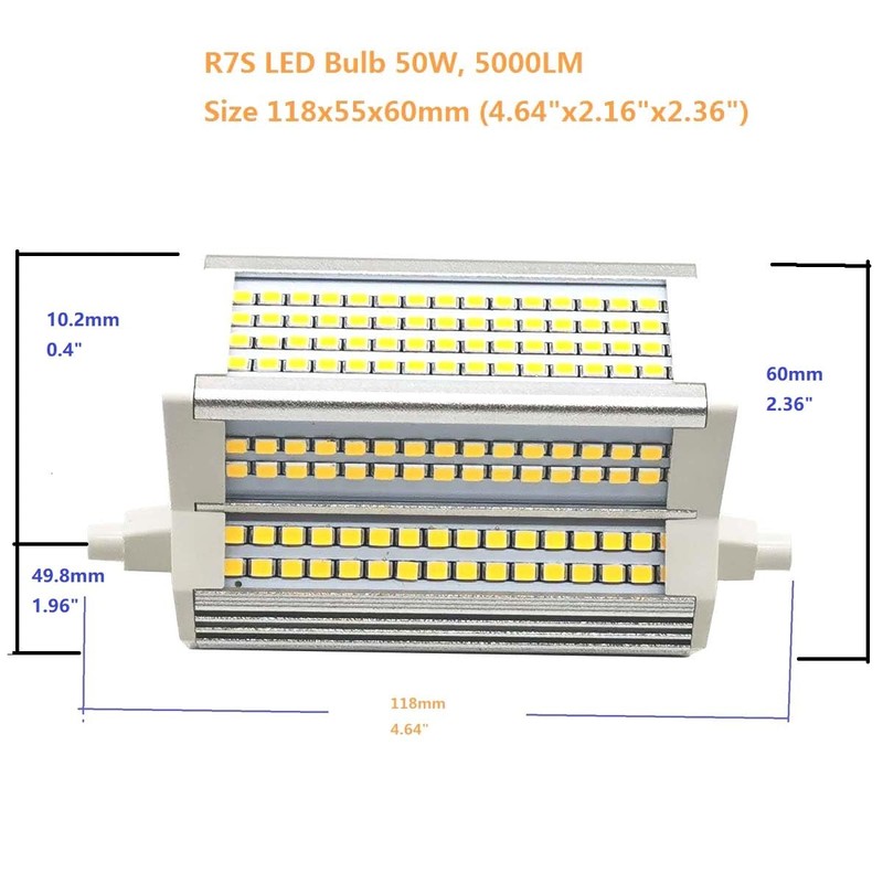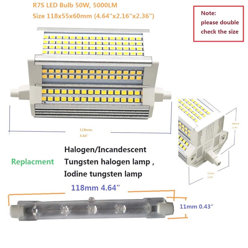 - Consommation LED 50 W equivalent 500 W 118 mm (4.64 pouces) Ampoule De Remplacement à Incandescence HalogèNe De Type R7s J à Double ExtréMité;