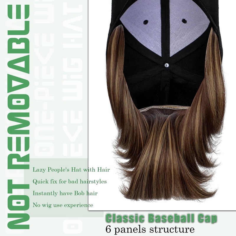 - Specification & Material: Baseball cap with straight bob hair is 14inch. The hairpiece is 8inch and weight about 0.3ib. The baseball cap wig is made of high quality synthetic fiber. Full, soft and tangle-free