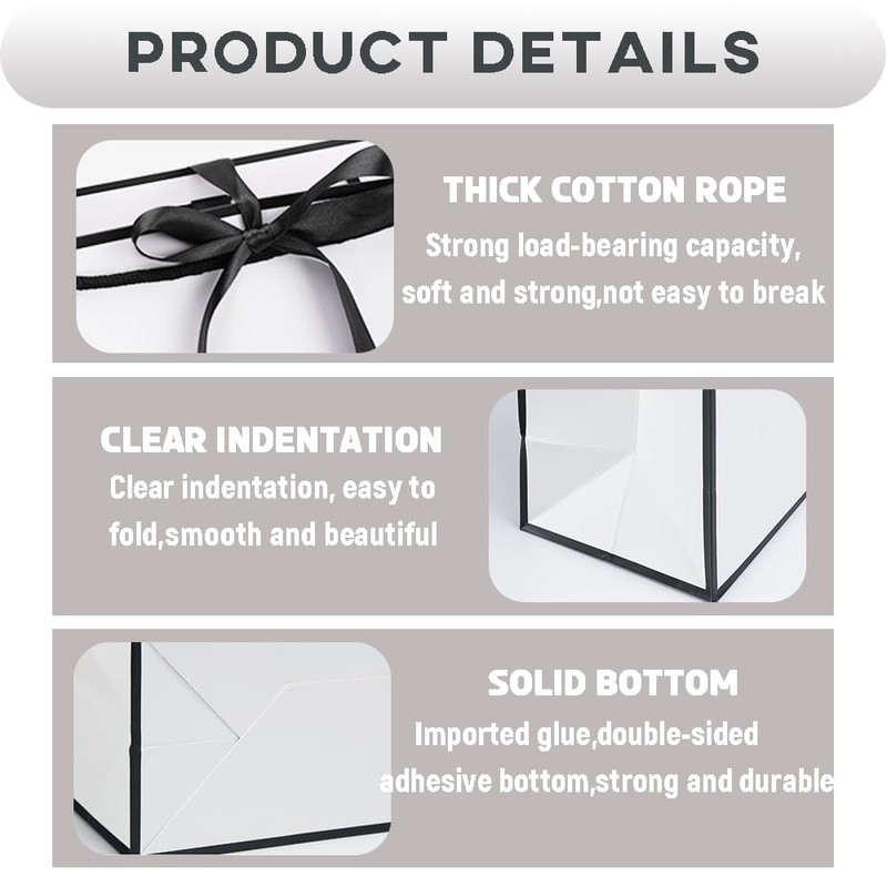 - Size and Quality - Small:11.8"x4"x8"/Medium:12.6"x4.3"x10.5".Made from high-quality materials from well-managed forests,Thickened cardpaper has more hardness,odorless,Give a beautiful ribbon,comes with cotton rope handles looks classier and more fashionable as a gift bag.100% brand new made by QLSKO.