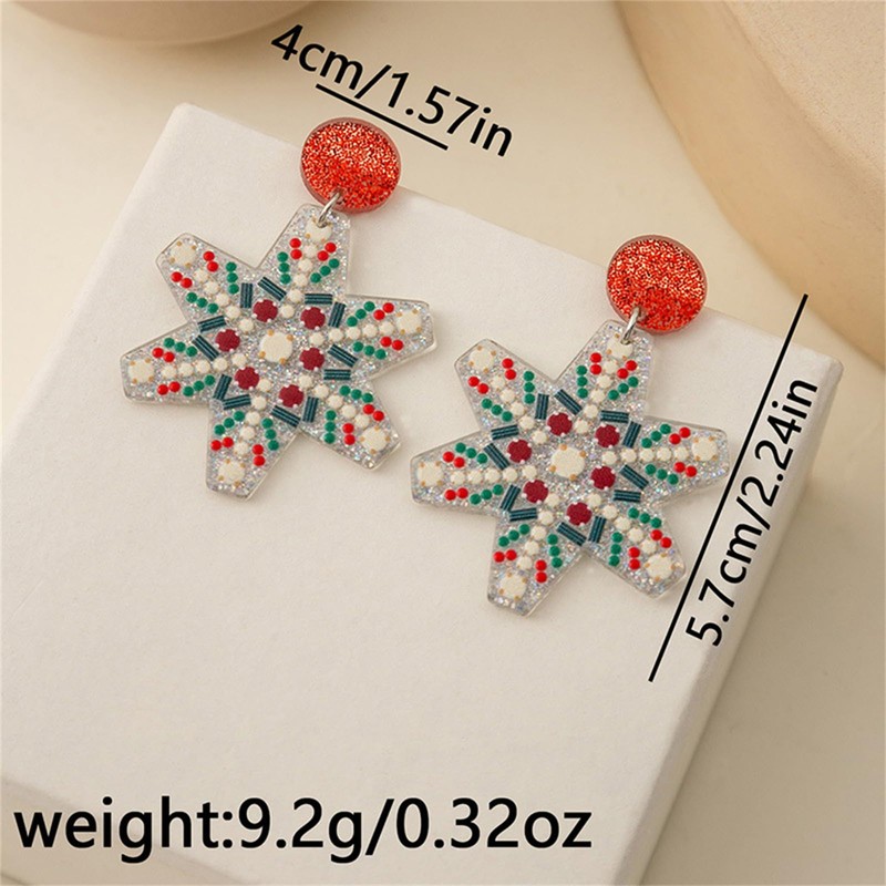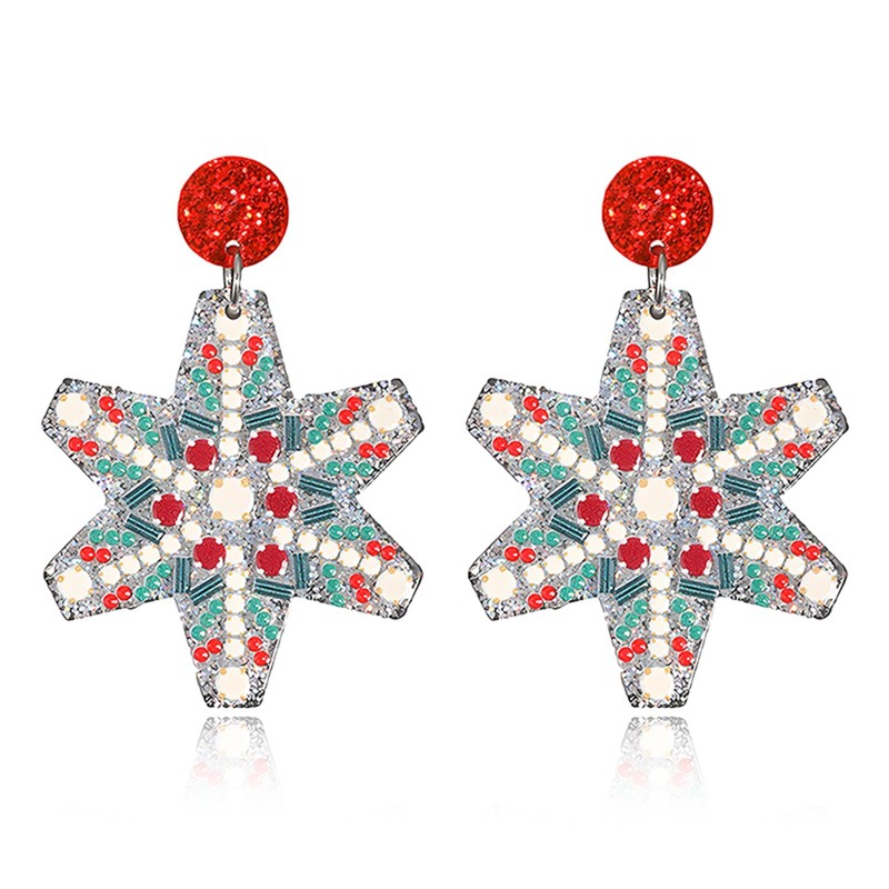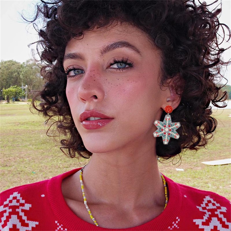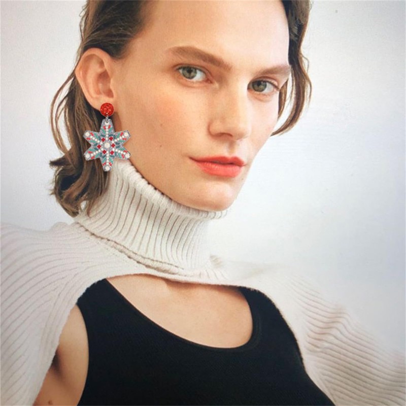 QLYOVWE Christmas Crystal Earrings for Women Handmade Sparkly Snowflake Santa Claus Wreath Dangle Earrings Winter Christmas Costume Party Jewelry Gifts (Snow)