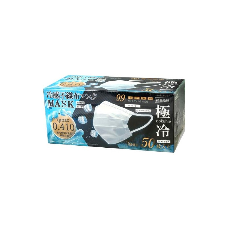 Qmax0.410 Cooling Non-woven Fabric Mask, Ultra Cool, 50 Sheets